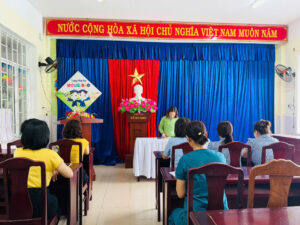 Các cô được nhà trường bồi dưỡng chuyên môn hàng tháng đê nâng cao tay nghề