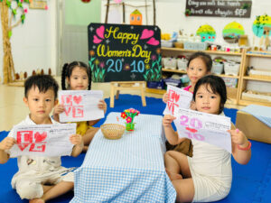 Thông qua hoạt động này, các con không chỉ được trải nghiệm niềm vui sáng tạo, rèn luyện sự khéo léo và tự tin, mà còn được giáo dục về tình yêu thương, lòng kính trọng đối với những người phụ nữ trong gia đình và xã hội.